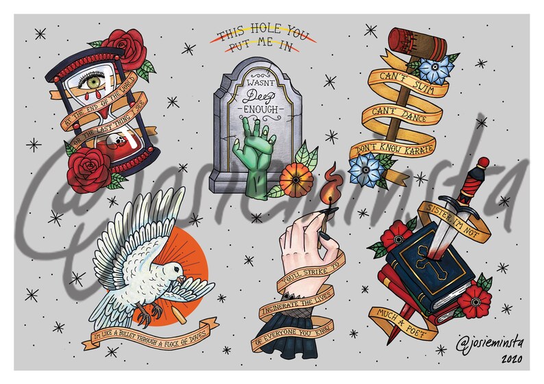Mcr Three Cheers Flash Sheet A4 Size Tattoo Flash Sheet Traditional Tattoo Art Prints